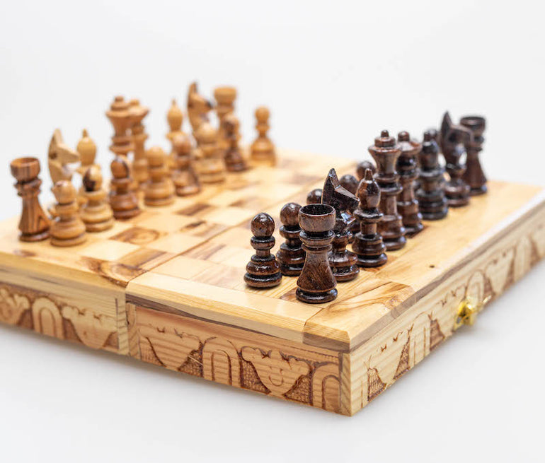 Olive Wood Chess Set, traditionally made and crafted, made of olive wood.