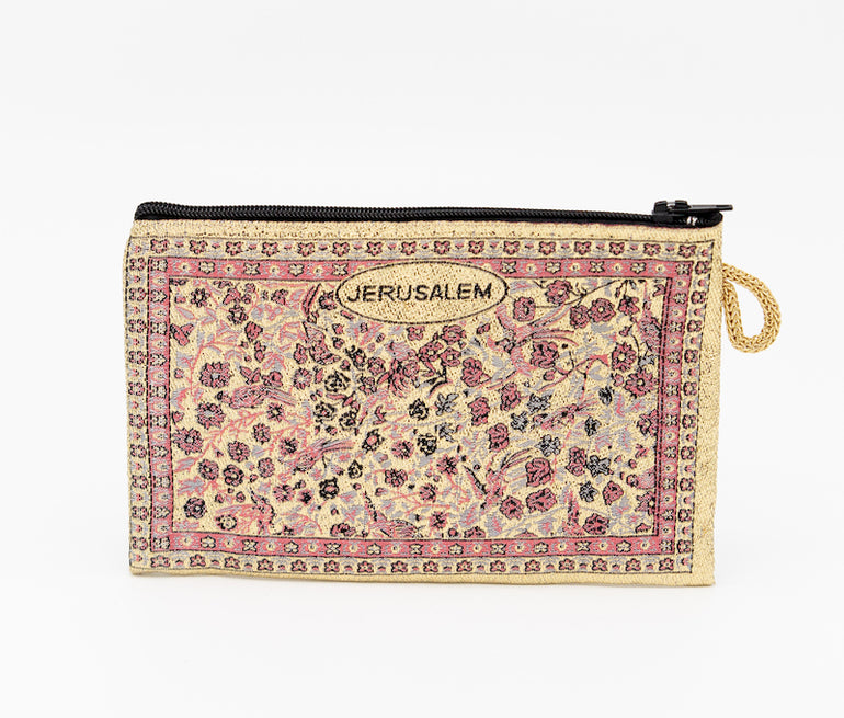 This small purse features the word "JERUSALEM" in bold letters, making it a must-have accessory for any traveler or lover of this historic city of Jerusalem in the Holy Land . Its compact size makes it perfect for carrying your essentials. Feel connected to the beloved city of Jerusalem with this stylish and beautiful purse.