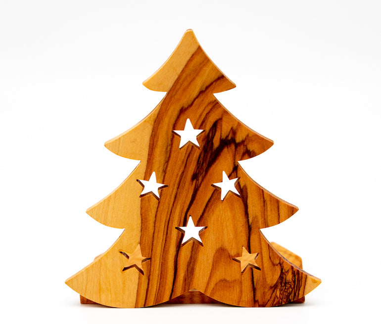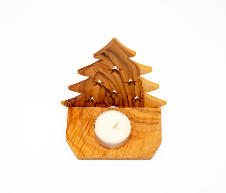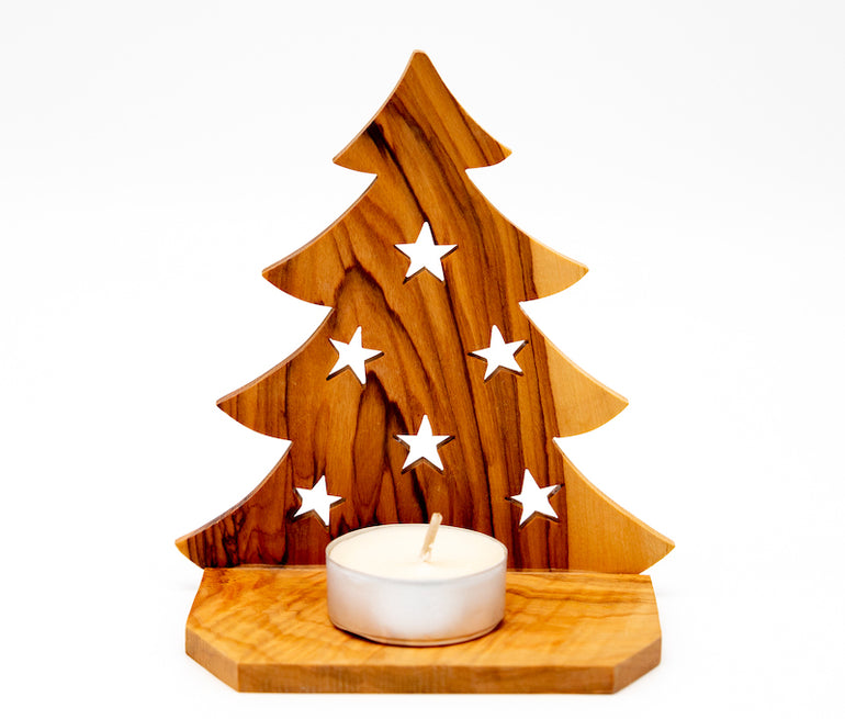 Christmas tree candle holder, traditionally made and crafted, made of olive wood.