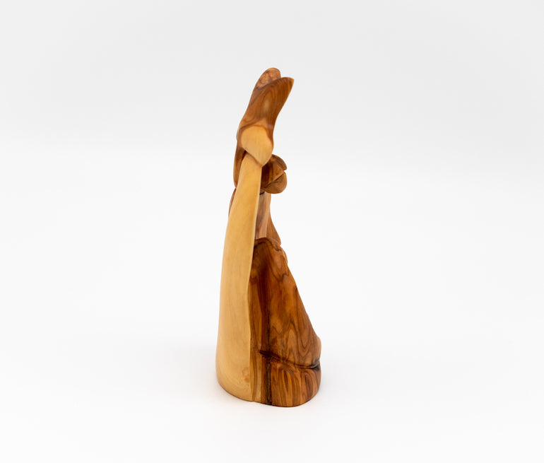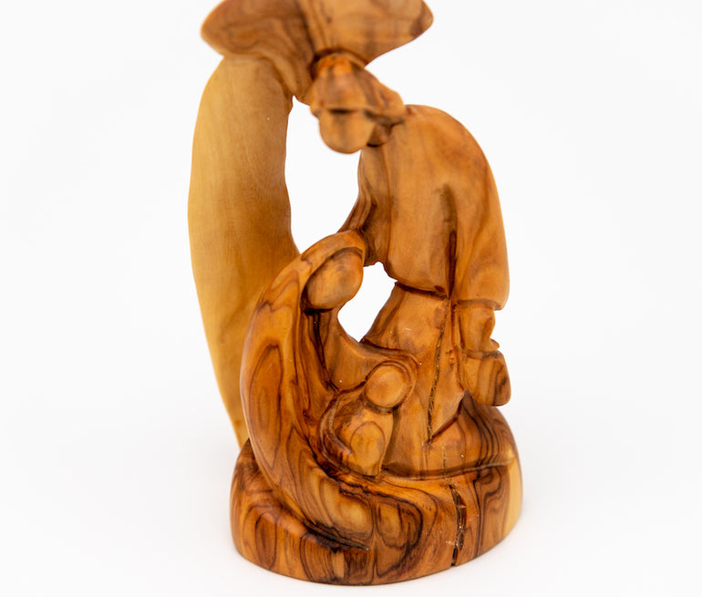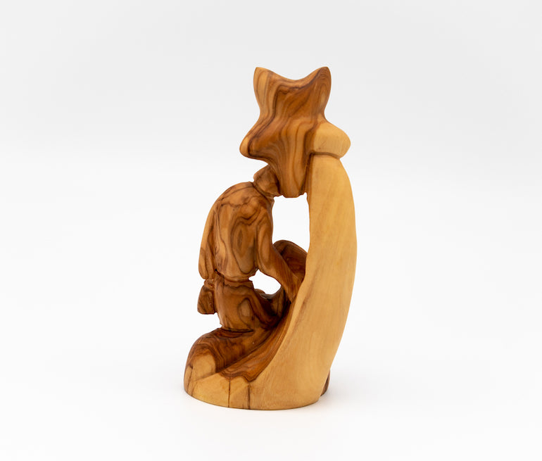 Holy family with Christmas star figurine. Traditionally made and crafted, made of olive wood.