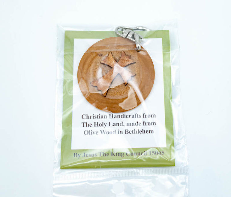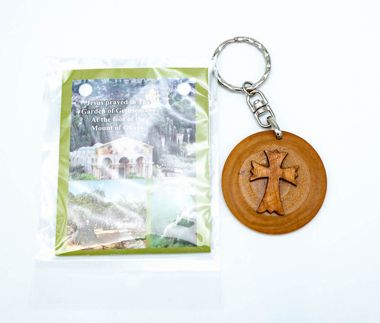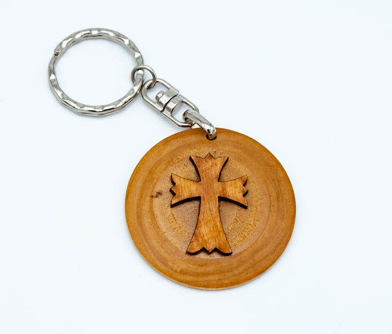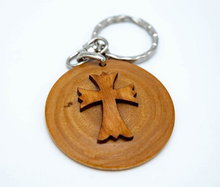 Cross Keychain, traditionally made and crafted, made of olive wood.