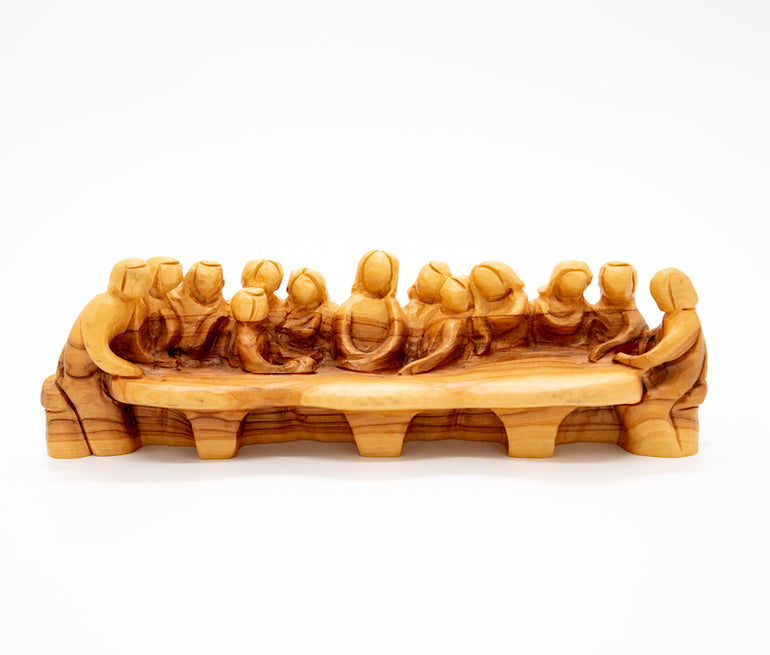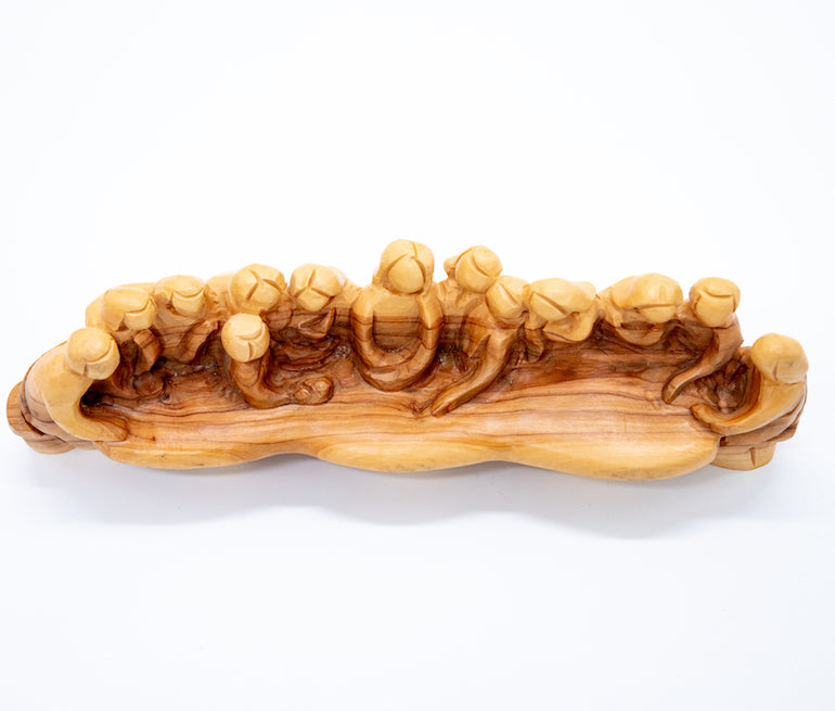 Olive wood plain Last Supper statue; traditionally made and handcrafted, made of olive wood.
