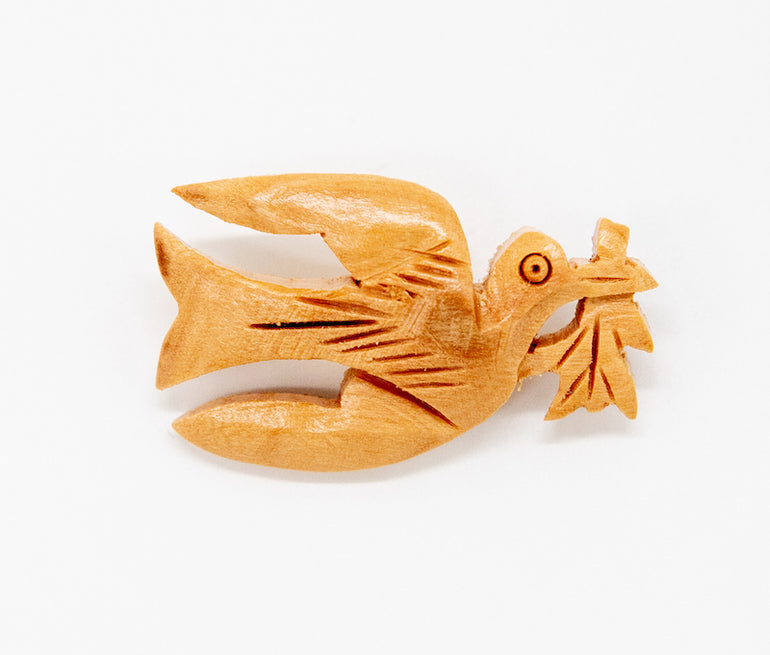 Wooden dove pin; traditionally made and crafted, made of olive wood.
