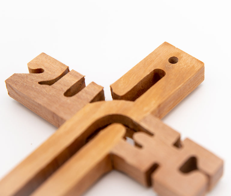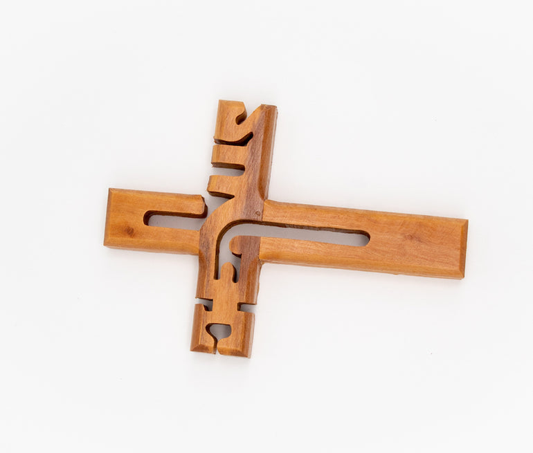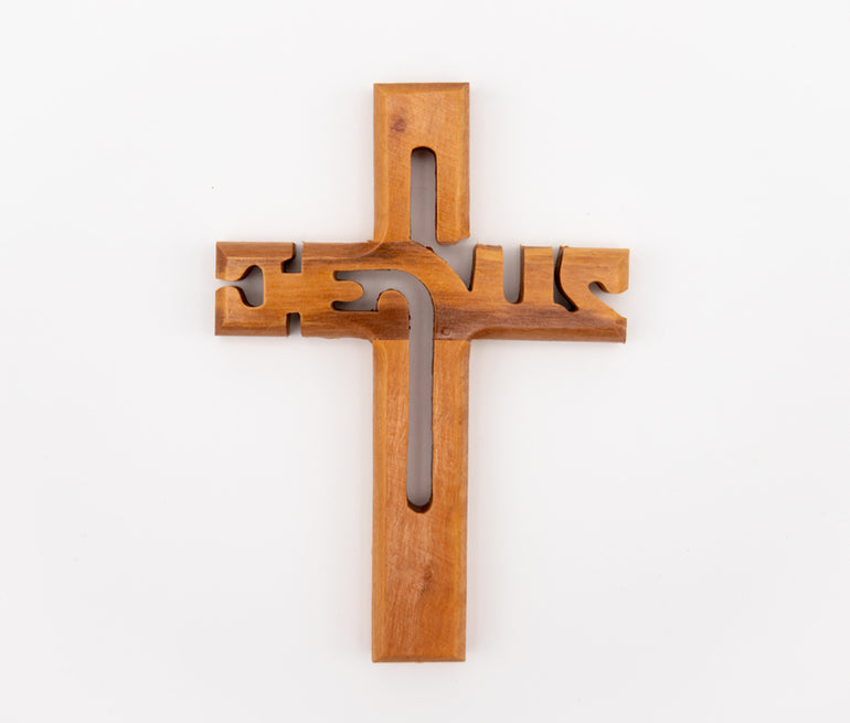 "Jesus" engraved cross, traditionally made and crafted, made of olive wood.