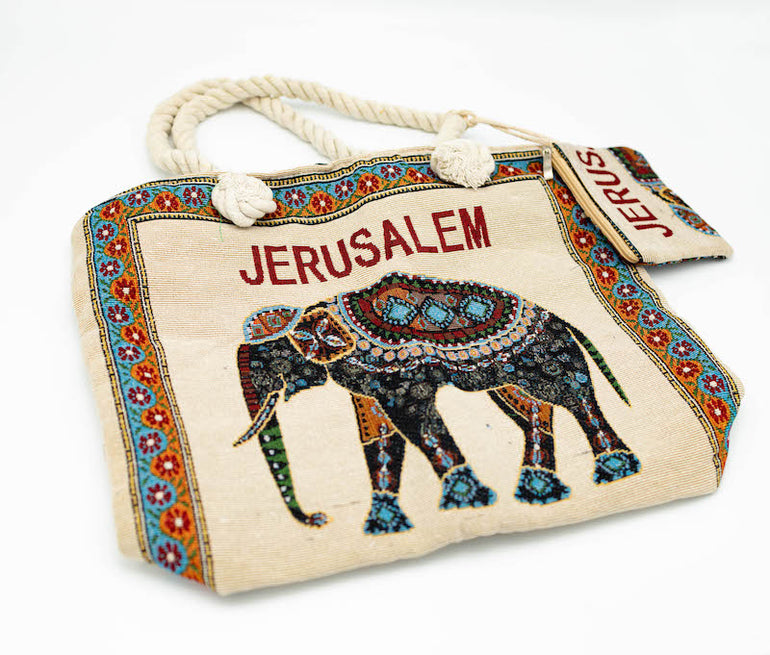 Shoulder bag & small purse - traditional stitching with the word Jerusalem.