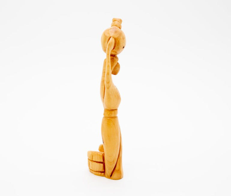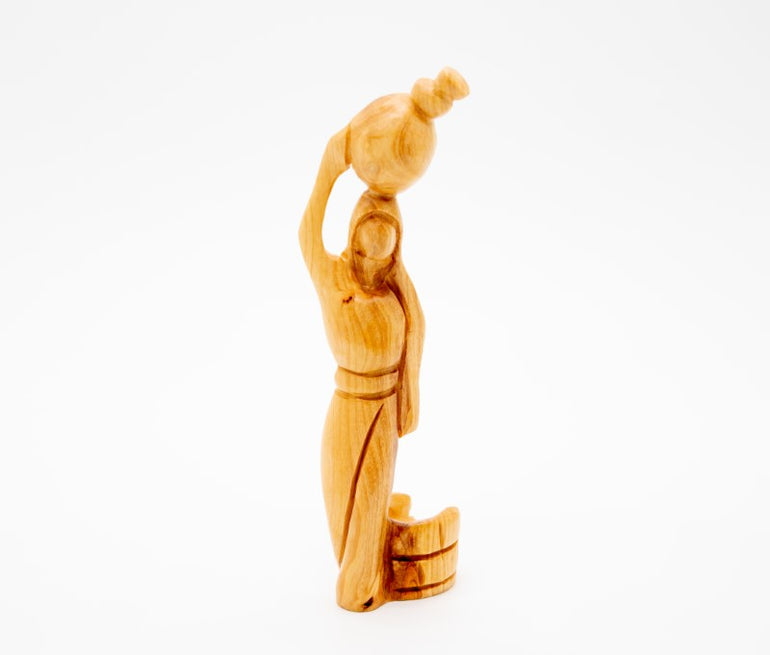 Olive wood ‘Peasant Woman at Well’ plain statue
